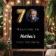Une affiche de bienvenue pour une fête du 70e anniversaire. Arrière - plan noir. Personnalisez et ajoutez un nom et une photo.