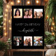 Pour le 21e anniversaire d'une femme (ou tout âge), célébrant sa vie avec un collage de 6 de vos photos d'elle, de ses amis, de sa famille, de son intérêt ou de ses animaux de compagnie de haute qualité. Personnalisez et ajoutez son nom, âge 21. Un arrière - plan noir classique. Son nom est écrit avec un script de style moderne écrit à la main avec des swashes. Pour que les swashes ne suppriment que le nom de l'échantillon, laissez les espaces ou émoticônes devant et après le nom. Parfait comme décoration murale de fête, signe d'accueil et conservation.