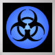 Symbole de danger biologique noir sur un arrière - plan bleu circulaire.