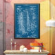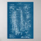 Affiche de brevet saxophone en bleu. Correspondance d'articles dans notre magasin.