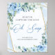 Un panneau romantique à la mariage boho avec des fleurs bleues poussiéreuses, de la verdure d'eucalyptus et une touche de parties scintillant dorée dans le cadre crée une atmosphère fantaisiste et élégante. Cette combinaison de couleurs et d'éléments peut évoquer un sentiment de nature et de sophistication, ajoutant un charme unique et enchanteur à la décoration mariage. Le mélange de teintes bleues douces, de verdure luxuriante et d'or subtil peut créer un look visuellement étonnant et cohésif pour le panneau de table, améliorant l'esthétique générale de la célébration mariage Contactez-moi pour les articles correspondants ou pour la personnalisation, Roses blush ©