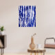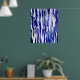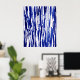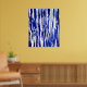Poster art imprimer original abstrait rayé aquarelle peinture en bleu et blanc.