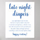 Une façon amusante de donner des conseils aux nouveaux parents et de rire avec cette verticale couches tard dans la nuit signe de la table de voeux : Douche simple ou genre révéler la marque de calligraphie florissante de la fête avec un script amusant, décontracté écrit à la main. Le design classique comprend une typographie moderne de citation à main superposée avec du poème. Pour coordonner les couleurs ou les produits correspondants, veuillez visiter le magasin JustFharryn à l'adresse Zazzle.com Tous droits réservés. #zazzlemade