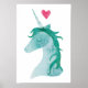 Une licorne turquoise douce avec un coeur rose mignon au-dessus. Artiste : Melissa Averinos