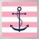 Le design nautique chic et preppy présente une belle forme d'ancre sur un arrière - plan de rayures nautiques horizontales.