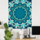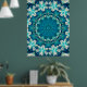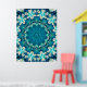Poster Blue Aqua Mandala Rosette Retro Hippie