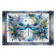 A luminous blue dragonfly spreads delicate wings across a dreamy watercolor botanical scene, surrounded by soft florals, airy leaves, and scattered paint splashes. Shades of sapphire, teal, indigo, and gentle pastel greens blend into a light, painterly background that feels calm and enchanting. The dragonfly’s iridescent wings shimmer with layered watercolor textures, creating a graceful focal point framed by whimsical wildflowers and flowing foliage. Subtle ink-like splatters and soft washes add an expressive, artistic energy while maintaining a peaceful, nature-inspired mood. The overall aesthetic leans toward cottagecore and modern boho, combining botanical beauty with an ethereal watercolor style that feels both elegant and playful. Light, airy composition and nature motifs give the artwork a tranquil, storybook atmosphere reminiscent of quiet gardens, summer meadows, and delicate forest moments. AI generated artwork.