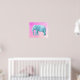 Poster Blue Elephant on Dreamy Pink Watercolors