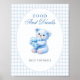 Poster Blue Gingham Bow Heart Teddy Bear Baby Shower