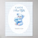 Poster Blue Gingham Bow Heart Teddy Bear Baby Shower