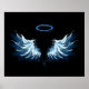 Poster Blue Glowing Angel Wings on black background
