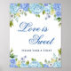 Poster Blue Hydrangea Greenery Mariage Dessert Bar