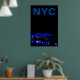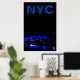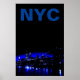 Poster Blue New York City Night Brooklyn Bridge