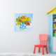 Cute blue and white polka-dot rain boots with autumn leaves.