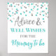 Conseils et voeux pour que la maman signe pour le baby shower en bleu clair et motif confetti argent. Veuillez noter que l'effet de parties scintillant n'est que photographique.