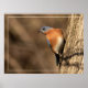 Joli profil d'un oiseau bleu alors qu'il se penche de son perchoir de tronc d'arbre.
