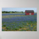 Un champ de bleuets et une grange rouge, près de Red Oak, Texas.