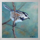 Un petit dauphin de montagne, expert, perche sur une branche, prêt à prendre l'avion. Cette image provient d'une peinture à l'huile originale de l'artiste primée du Colorado Debra Mickelson.