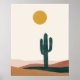 Bohème Abstrait Desert Landscape Wall Art avec cactus et soleil.