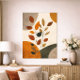 A warm and organic boho design featuring abstract shapes and botanical leaves in rich earth tones. The combination of soft textures and natural elements creates a calming yet visually engaging composition, perfect for modern and bohemian interiors.