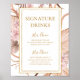 Ce panneau de boissons signature à motif botanique tropical boho est parfait pour votre réception de mariage élégant et rustique avec des fleurs, du vert, du pêche et du rose gold. Le design présente un cadre doré ou un bouquet avec de l'herbe de pampa rose blush moderne, du sauge simple, de l'ivoire, une feuille de palmier champagne et de la verdure de plage classique. Les fleurs peuvent inclure des roses roses et des orchidées. Le design est idéal pour un mariage classe vintage avec de la terre cuite, du beige, de la rouille, en hiver, au printemps ou en automne. Veuillez trouver d'autres papeteries de mariage assorties ou coordonnées dans le reste de la collection.
