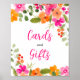 Des cartes de douches nuptiales boho chic orange, rose et vert floral et des cadeaux signent avec de jolies fleurs peintes à la main dans et fleurissent avec le feuillage verdoyant. Une jolie douche nuptiale de jardin avec une brosse de police de script moderne.