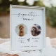 Cette enseigne de boisson signature comporte deux emplacements pour photos, une police manuscrite et un design minimaliste moderne. Changez facilement la police et la couleur de fond pour correspondre à votre événement. Cette enseigne est parfaite pour ajouter soit une photo des mariés, des enfants, ou de vos animaux de compagnie préférés.