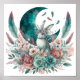 Lapin lapin Boho aux couleurs turquoises et mauves encadrées par une lune croissant, plumes et fleurs. Beau design floral mixte parfait pour la chambre bébé.
