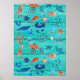Poster Bois de teinte bleue rustique & amis fantaisistes