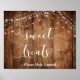 Cette suite de design rustique et élégante présente des tendances design populaires combinées de façon fraîche. Avec un riche arrière - plan en bois brun et deux cordes d'accents lumineux scintillants, j'ai combiné une belle police de script moderne pour rendre des graphiques représentant des mots clés et des phrases dans l'ensemble de conception. Dans le dessin de ce panneau, le texte de calligraphie dit "douceurs". Les pièces de cette collection sont idéales pour une réception de campagne ou un mariage décontracté ou un événement de célébration. Toutes les couches sont déverrouillées pour vous permettre autant de contrôle que vous le souhaitez. Je suis heureux d'aider à la personnalisation ! // 19 //