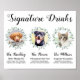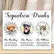 Cocktails Signature by de vos animaux de compagnie ! Incluez votre meilleur chien, meilleur chat et tout animal de compagnie à votre mariage avec son propre bar à cocktails signature pour vos invités. Parfait pour les amoureux des chiens, et un bar à chiens spécial sera un succès à votre mariage. Simple mais élégant blanc avec des feuilles d'eucalyptus.