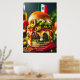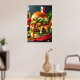 Préparez-vous à une explosion de saveur avec ce hamburger Sonora Spice Bomb. Une épaisse pâte de boeuf épicée, grillée à la perfection salée, est garnie de fromage fondu Oaxaca, de jalapeños rôtis, d'une généreuse salade de chipotle mayo et d'avocat frais. Le tout niché à l'intérieur d'un petit pain grillé et épais de maïs. Un petit drapeau mexicain ajoute une touche festive, tandis qu'un arrière - plan flou évoque les piments et le cilantro frais, complétant ce délice culinaire mexicain.