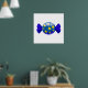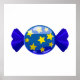 Un bonbon très coloré dans un emballage bleu. Ce design semble vraiment efficace sur cette affiche