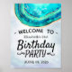 Joyeux décor de fête d'anniversaire Bienvenue Modèles de l'affiche - Elégante aquarelle Turquoise & Or Agate Géode Slice. Un design parfait pour votre grand jour. Tous les styles de texte, couleurs, tailles peuvent être modifiés selon vos besoins !