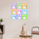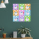 Une série de lapins mignons et colorés tenant des fleurs. Ce design semble vraiment efficace sur ces Poster