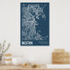 Poster Boston Massachusetts City Map Line Art Blue Imprim