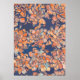 Un design botanique audacieux de rosettes florales dans une riche palette de couleurs automnales de bleus et de beige.