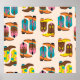 Différentes bottes de cowboy. Différents ornements. Cactus, Feu, Étoiles. Concept mode. Thème du Far West. Motif carré Vintage sans couture dessiné à la main. Arrière - plan, fond d'écran Western Footwear Fiesta : Les bottes de cowboy, les cactus et les étoiles célèbrent l'esprit de Wild West. Découvrez l'ouest sauvage avec Diverses bottes de cowboy. Une touche d'Americana et de style en un seul motif. cowboy, sans couture, occidental, motif, illustration, américain, texas, amérique, arrière - plan, vintage, chaussures, décoration, mode, dessin animé, rétro, étoiles, silhouette, doodle, coloré, vieux