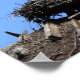 Stork debout dans son nid sur un toit en lambeaux. Photographie.