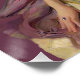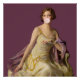 Oeuvre d'art pop d'un remix peinture vintage d'une femme en jaune soufflant une gomme à bulle rose avec arrière - plan motif or.