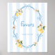 Merci à vos invités dans le style avec ce panneau de faveurs charmant avec des citrons aquarelles, des arcs bleus délicats et des rayures bleues et blanches classiques. Une touche de finition parfaite pour votre baby shower d'inspiration méditerranéenne, cette enseigne invitation les invités à prendre un doux souvenir à la maison.