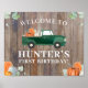My Boy Fall Birthday Green Truck and Citrouilles Welcome Poster est la meilleure façon d'accueillir vos amis et votre famille à une fête ! Panneau de bienvenue avec camion vert et citrouilles.