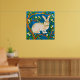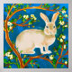 Imprimer dans une illustration d'un lapin sauvage, entouré de branches d'arbres à fleurs, contre un arrière - plan bleu denim foncé