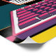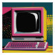 Poster brillant de Communication Technology avec un ordinateur vintage entouré d'éléments pop art design.