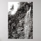 Photo en noir et blanc d'une cascade sur un bassin mural en pierre, avec des arbres à la ligne de crête, et le soleil brille à la crête de la scène paysagère. Copyright ©2019 Kimberly J Tilley. www.zazzle.com/developingnature