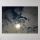 Poster avec une photo du Soleil brillant à travers les nuages dans le ciel.