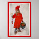 Robe de Noël lumineuse et casquette avec chaussures en peluche Brita porte des bougies et un panier de pommes. Beaux-arts du peintre suédois Carl Larsson.