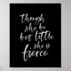 Élégant script de brosse blanche de la citation "bien qu'elle ne soit que petite, elle est féroce" de A Midsummer Night's Dream de William Shakespeare contre un arrière - plan noir. *Veuillez noter que le filigrane Zazzle qui apparaît dans l'aperçu du zoom n'apparaîtra PAS sur le produit imprimé final. © Bois de rose et agrumes