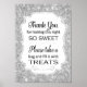 Ce panneau de buffet de bonbons argentés scintillants sera le complément parfait pour le bar à bonbons de votre mariage, anniversaire, douche de mariée ou douche de bébé. Il présente un fond scintillant argenté avec une découpe de cadre avec la phrase "Merci de rendre cette soirée si douce, prenez un sac et remplissez-le de friandises".