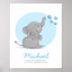Décorez la chambre de bébé de votre petit avec cette belle bulle bleue dessinée à la main pour éléphant bébé, personnalisée avec le nom, la date de naissance et le poids du bébé.